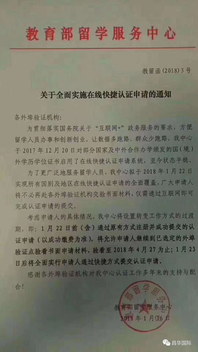 自2018年1月22日開始國境外學歷學位認證實現自己網上申請在線認證,不用再跑去各省市授權點了。