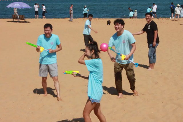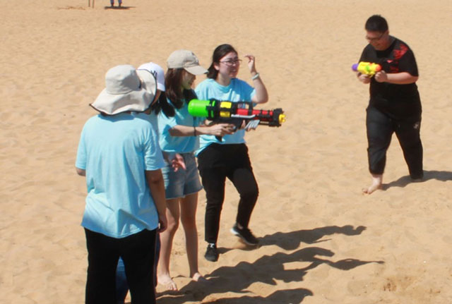 最后就是我們的放松時刻啦!~前面兩個活動取得優(yōu)異成績的同學們比較占優(yōu)勢啦~水槍水量足!壓力大!哈哈哈哈(捂臉)。。。