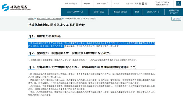 同時(shí)日本政府對受疫情影響的收入減少的企業(yè)也給予「持続化給付金」,中小企業(yè)(最多200萬日元)和個(gè)人事業(yè)主(最多100萬日元)從5月1日開始接受網(wǎng)上申請,最快在8日開始發(fā)放。