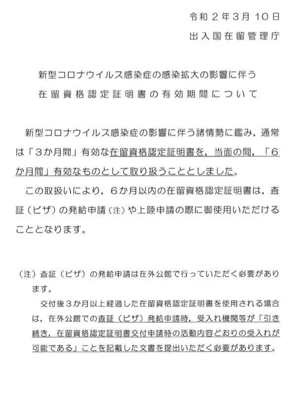昨天,日本入國管理局更新了一系列面向外國人的簽證政策,這次的新政則是只要是2019年10月1日到2021年1月29日之間發(fā)行的在留資格認定書,有效期延至入國限制解除的6個月內(nèi)或2021年4月30日。